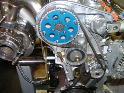 En la repositionnant à sa place initiale, la poulie de distribution se déplacera légèrement dans le sens des aiguilles d'une montre d'une demi-dent. Ce n'est pas grave. Vous n'avez toujours pas installé le tendeur et la poulie de tension. Une fois cela fait, le PMH de la came se réalignera. Poursuivez la procédure dans la section « Faire soi-même ».