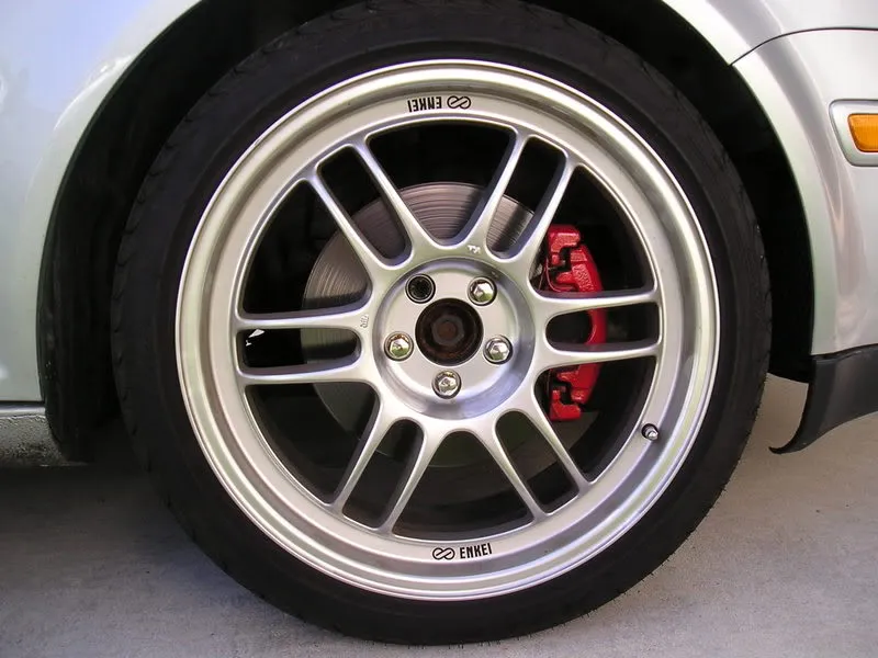 Soulevez la voiture, placez-la sur des chandelles et retirez la roue côté passager ainsi que le revêtement d'aile en plastique. Espérons que votre roue soit aussi belle que celle-ci.