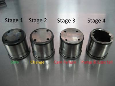 Les phases 2 et 3 nécessitent une inspection de l'arbre à cames pour s'assurer qu'il n'est pas endommagé. Il est arrivé que l'arbre à cames soit usé et endommagé.